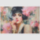 Évoquez l'élégance sensuelle des Années Folles avec ce papier de découpage en tissu featuring une flapper glamour parée de perles, d'accents dorés et d'une pièce de tête florale audacieuse. Avec un porte-cigarette à la main et un halo rêveur de fleurs peintes à l'arrière-plan, ce design inspiré de l'époque est parfait pour la décoration de bar haut de gamme, les événements sur le thème de l'ère du jazz, les artisanats de speakeasy et les projets DIY glamour féminins.
