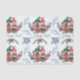 Nome d'aquarelle mignonne avec lanterne et arbre de Noël et décoration de mistletoe, cône de pin et baies rouges et bleues