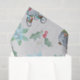 Le motif de vacances festif présente des gnomes de Noël géants illustrés d'aquarelle dans des brouettes, sur des vélos et des tours de cadeaux, ainsi que des poinsettias saintes et blanches sur arrière - plan gris clair