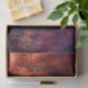 Papier en tissu victorien foncé violet et cuivre affaissé gothique avec des fleurs dorées ornées.
