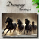 Ressentez le tonnerre des sabots et la ruée de l'air hivernal avec ce puissant tissu de découpage de Decoupage_Boutique. Un troupeau foncé d'étalons musculaires se charge à travers une forêt enneigée, les manes volent et la neige monte à chaque pas. Parfait pour les transformations de meubles masculins, la décoration rustique de la maison, ou toute personne à la recherche d'un moment équestre audacieux plein de mouvement et de puissance.