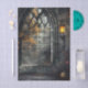 Gothic arched window entwined with trailing ivy, inspired by old cathedrals and forgotten gardens. Lit by lamplight. Featuring lead-paned detailing and rich shadowed tones, this decoupage tissue paper adds an elegant, slightly eerie beauty to furniture, journals, and mixed-media projects.