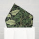Un imprimé feuillage avec un feuille vert clair presque olive ou sage entrelacé dans des verts plus foncés. Une ombre de vert chasseur ou de vert foncé de forêt crée la grande majorité des feuilles. Sur un arrière - plan de noir.