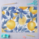 Belle combinaison de couleurs bleu et jaune pour les designs extraordinaires et des couleurs fraîches avec citrons Aquarelle et feuilles brillants avec bleu poudreux