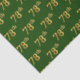 Ce papier de tissu présente le numéro ordinal "78e" avec une coloration imitation or. Il dispose également d'une arrière - plan de couleur verte. On pourrait peut-être l’utiliser avec des cadeaux offerts pour le soixante-dix-huitième anniversaire de quelqu’un, ou pour le soixante-dix-huitième anniversaire de mariage d’un couple marié, ou pour un autre 78e événement ou occasion. [~Z0000153]