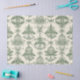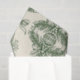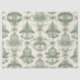 A vintage-style green toile seamless pattern tissue paper featuring intricately illustrated Christmas bells, holly branches, pine sprigs, ribbons, and ornaments on a soft cream background. The elegant monochrome linework evokes a classic holiday charm, reminiscent of Victorian Christmas decor. This pattern blends timeless elegance with nostalgic seasonal spirit.