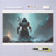 Un design saisissant avec un puissant guerrier habillé d'armure brillante et détaillée, au milieu d'un terrain accidenté de montagne. La figure dégage force et résilience, avec leur pose se mélangeant harmonieusement dans le paysage rocheux dramatique. L'armure reflète la lumière naturelle, mettant l'accent à la fois sur la domination du guerrier et sur la beauté majestueuse de la nature sauvage environnante. Parfait pour les thèmes de l'héroïsme, de l'aventure