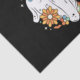 Tissu papier avec illustration d'un fantôme souriant. Décoré de fleurs, arcs-en-ciel et chauves-souris.