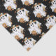 Tissu papier avec illustration d'un fantôme souriant. Décoré de fleurs, arcs-en-ciel et chauves-souris.