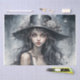 Explorez le monde enchanteur de la découpage avec ce projet artisanal avec une sorcière femme décorée d'un casquette noir et de longs cheveux noirs, rendus dans des aquarelles délicates. Idéal pour Halloween ou pour améliorer le raffinement des meubles, cette pièce capture le charme mystique de l'esthétique gothique