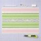 Tissu rayé dans les tons pastel vert, rose et jaune avec motifs floraux, inspiré de la décoration de Taj Mahal.