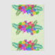 Bold floral design tissue paper with hibiscus flowers and big leaves. Multicolor swag in red, blue, yellow, purple and green is repeated in a large pattern over pale green paper. A unique and creative design for crafts or wrapping summer party gifts.