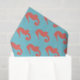 Hippocampes roses de corail côtiers et papier de soie de soie bleu.