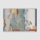 Hiroshige : Hodogaya, 1855. Des imprimés japonais Vintages montrent des voyageurs se reposant sous des bâtiments à toit de chaume, avec vue sur une vallée et des montagnes au loin, à la station Hodogaya sur la route Tō kaidō. Couleur de bois d'Andō Hiroshige. Station n° 4 dans la série Gojū santsugi meisho zue (Célèbre vue de 53 stations de la route Tō kaidō), 1855.