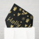Un Fun Black Et Gold Fun Tissu De Fêtes Motif De Coeurs Et De Snowflakes Et Les Mots Holly Jolly En Or