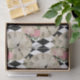 Ce design d'inspiration vintage présente des horloges aux fleurs roses sur un arrière - plan motif en diamant noir et blanc. Parfait pour l'art découpage, l'artisanat en papier ou l'emballage cadeau.