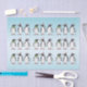 L'illustration originale de Destei de trois pingouins Gentoo festifs tenant des lumières de Noël colorées avec leurs becs. Un pingouin porte une écharpe verte, un autre une protection à l'oreille violette et le troisième pingouin au milieu porte un chapeau de Père Noël rouge et blanc. L'arrière - plan est un dégradé bleu clair.