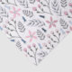 Jolie illustration florale dans les tons bleus et roses avec feuilles composés en chute, fleurs et baies dans un motif répétitif.