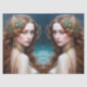 Portrait d'une jolie sirène portant bijoux et fleurs bleues. Art original par Gifts_AtTheCorner Mjm 2023.