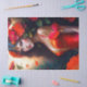 Portrait d'une belle fée rouge imaginaire avec des fleurs rouges sur ses cheveux. Art original par Gifts_AtTheCorner Mjm©2023.