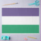 Ce dessin est orné du drapeau du mouvement des suffragettes, qui au 20ème siècle s'est battu pour le droit de vote aux élections publiques, connu sous le nom de suffrage des femmes. Le terme "suffragette" a été inventé pour la première fois pour minimiser le mouvement, mais les femmes impliquées ont rapidement accepté et adopté le nouveau nom comme signe de leur refus d'accepter des élections réservées aux hommes. Le mouvement continue d'inspirer les campagnes féministes et d'autres campagnes politiques aujourd'hui.