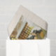 Vintage Jingle Bells drap avec une illustration d'un traîneau tiré par des chevaux à travers une ville enneigée, cloches et verdure. Utilisez pour des projets de découpage de vacances ou pour envelopper un cadeau de Noël spécial.