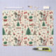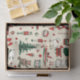 Jolie vintage époque édouardienne illustrations de jouets pour enfants (cheval de passe-temps, poupées, soldats, bateaux, train, livre, tambour, sucre de canne, canard, clown, mouton, mitaines, traîneau, ours en peluche) et arbre de Noël, ornements et boules dans les tons rouge et vert sur le blanc cassé arrière - plan, pour les amateurs d'emballage de Noël vieux mode, le meilleur pour le cadeau de vacances