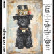 Papier Mousseline Joli Chiot Noir En Casquette Steampunk DL1R Découp
