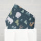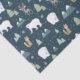 Tissu papier avec un motif fantaisiste. Ours polaires, rennes, arbres, renards et flocons de neige. Sur un arrière - plan vert foncé.