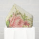 Ce joli papier de tissu a un charmant motif vintage de cartes postales françaises rétro avec la Tour Eiffel allumé, de belles roses roses, un oiseau-chanteur dans une cage et un spray de fleurs de Lily de la Vallée.
