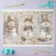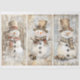 Papier Mousseline Jolis bonhommes de neige shabby chic beige AL8 déc