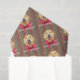 Carte de vacances Festive avec visage de chien de laboratoire/récupérateur doré avec arc rouge et arrière - plan de flocons de neige multicolore