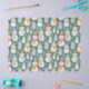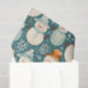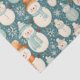 Papier cadeau de Noël avec bonhomme de neige en or et turquoise. Un motif moelleux et douillet avec des vibes vintages.