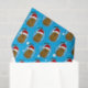 Adorable pomme de terre de dessin animé marrante, mignonne et heureuse, portant un chapeau de Père Noël rouge et blanc. La pomme de terre est dans un style d'art de dessin animé et colorée en marron, elle a des bras et des doigts en bâtonnets et un grand sourire heureux avec des points pour les yeux. Le chapeau de Père Noël sur sa tête est rouge avec une garniture blanche et un pompon blanc qui pend. Elle est à l'intérieur d'une forme ovale bleu clair avec un cadre bleu foncé et deux feuilles de houx vertes avec deux baies rouges en haut de l'ovale. La couleur de fond est un bleu clair vif avec des flocons de neige blancs flottant autour pour donner une atmosphère festive à ce papier de soie saisonnier mignon.