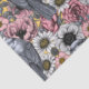 Motif vectoriel dessiné à la main avec diverses fleurs, feuilles et oiseaux de jay gris