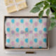 Repeat pattern of blue, pink and white cat-shaped cups of tea - or coffee - with kawaii faces.