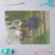 Ce dessin présente un tableau de l'artiste britannique de pré-Raphaélite John Collier (1850-1934). Elle montre une femme riche en robe élégante dans un cadre médiéval. Peut-être est-elle une princesse ou une femme noble. Le long train de tissu attaché à la robe de la dame est porté par deux jeunes garçons, qui font également partie du tribunal aristocratique. La dame marche sur quelques marches en pierre de manière gracieuse et raffinée. Il y a des pelouses d'herbe manucurées de chaque côté d'elle. Il y a aussi de grands sapins de conifères. Le ciel est bleu avec quelques nuages blancs, et il y a des montagnes au loin. Le costume que porte la dame est bleu et or, et elle a une coiffure élaborée dans un style qui était à la mode au Moyen Age européen. La robe de la dame est bleu foncé avec un motif en fleur de lis doré. L'oeuvre originale a été peinte par John Collier en 1920.