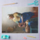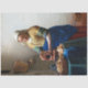 Johannes Vermeer (Octobre 1632 - Décembre 1675), dans l'original néerlandais Jan Vermeer van Delft, était un peintre de l'époque baroque hollandaise qui se spécialisait dans les scènes intérieures intérieures de la vie de classe moyenne. Au cours de sa vie, il a été un peintre de genre provincial modérément réussi, reconnu à Delft et à La Haye. Néanmoins, il a produit relativement peu de tableaux et n'était évidemment pas riche, laissant sa femme et ses enfants endettés à sa mort. Vermeer travaillait lentement et avec grand soin, et utilisait fréquemment des pigments très coûteux. Il est particulièrement réputé pour son traitement magistral et son utilisation de la lumière dans son travail. "Presque tous ses tableaux", écrivait Hans Koningsberger, "sont apparemment installés dans deux petites pièces de sa maison de Delft ; ils montrent les mêmes meubles et décorations dans divers arrangements et ils dépeignent souvent les mêmes personnes, surtout des femmes". Sa modeste célébrité a cédé la place à l'obscurité après sa mort. Il a été à peine mentionné dans le principal livre source d'Arnold Houbraken sur la peinture hollandaise du 17ème siècle (Grand Théâtre des Peintres hollandais et des Artistes femmes) et a donc été omis des enquêtes ultérieures sur l'art hollandais pendant près de deux siècles. Au 19ème siècle, Vermeer fut redécouvert par Gustav Friedrich Waagen et Théophile Thoré-Bürger, qui publièrent un essai qui lui attribuait 66 photos, bien que seulement 34 peintures lui soient aujourd'hui attribuées par tous. Depuis lors, la réputation de Vermeer s'est développée et il est maintenant reconnu comme l'un des plus grands peintres de l'âge d'or hollandais. Citation : Wikipedia