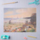 Ce dessin présente un tableau de l'artiste américain William James Glackens (1870-1938). Il montre un groupe de personnes profitant d'une chaude journée d'été sur une plage en Nouvelle-Angleterre, aux États-Unis. Un bâtiment en bois abrite la plage. Une jetée en bois se trouve également dans l'eau. Beaucoup de familles et d'enfants sont assis sur la plage, se relaxant sous le beau soleil. D'autres nagent dans l'eau. Il y a aussi quelques voiliers en mer. L'art original a été peint en 1913.