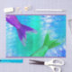 Papier de soie de soie orienté de sirène avec les queues pourpres et vertes de sirène et les échelles de vert bleu.