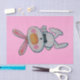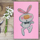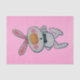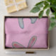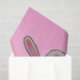 Ces feuilles de papier de tissu sont roses vibrantes avec un lapin de dessin animé donnant un signe pouce vers le haut portant une cravate d'arc noir, avec des joues roses et un gros nez orange.
