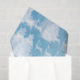 Papier de tissus de vacances avec cerf de silhouette blanche et arbres blancs recouverts de neige sur un arrière - plan de bleu.
