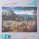 Pieter Bruegel l'Ancien (1525-1530 - 9 septembre 1569) fut l'artiste le plus important de la peinture de la Renaissance néerlandaise et flamande, peintre et graveur de Brabant, connu pour ses paysages et ses scènes paysannes (ce qu'on appelle la peinture de genre); il fut un pionnier dans la réalisation des deux types de grands peintures. Les historiens de l'art pensent qu'il est né à Breda ou à Breugel (un village de la commune de Son en Breugel), tous deux situés dans la province hollandaise actuelle du Brabant-Nord. Il a été une influence formative sur la peinture hollandaise de l'âge d'or et plus tard la peinture en général dans ses choix innovants de matière, comme l'une des premières générations d'artistes à grandir lorsque les sujets religieux avaient cessé d'être l'objet naturel de la peinture. Il ne peint pas non plus de portraits, l'autre pilier de l'art néerlandais. Après sa formation et ses voyages en Italie, il retourne en 1555 pour s'installer à Anvers, où il travaille principalement comme un créateur prolifique de gravures pour le principal éditeur de l'époque. Ce n'est qu'à la fin de la décennie qu'il a changé pour faire de la peinture son principal médium, et toutes ses célèbres peintures viennent de la période suivante, un peu plus de dix ans avant sa mort précoce, alors qu'il était probablement dans la quarantaine, et à l'apogée de ses pouvoirs. En plus de regarder vers l'avant, son art revigore des sujets médiévaux tels que les drolleries marginales de la vie ordinaire dans des manuscrits illuminés, et les scènes du calendrier des travaux agricoles mis en scène dans les arrière - plans paysagistes, et les met à une échelle beaucoup plus grande qu'auparavant, et dans le médium coûteux de la peinture à l'huile. Il fait de même avec le monde fantastique et anarchique développé dans les estampes Renaissance et les illustrations de livres. Citation : Wikipedia