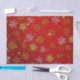 Motif de flocon d'argent et d'or, papier de tissu rouge foncé pour la saison de Noël. Envelopper les cadeaux dans ce papier festif avec des flocons de neige étincelants et des étoiles scintillantes.