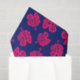 J'ai créé ce motif à partir d'une impression de lino faite à la main. J'espère que les fleurs d'hibiscus roses sur l'arrière - plan bleu foncé vous apportent ce sentiment de vacances tropicale dans votre maison. Bon appétit !