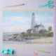 Lithographie vintage de la Light House à New London CT à partir de 1906 sur des feuilles de papier de tissu.