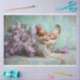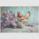 Ajoutez une délicate touche de charme rustique à vos projets d'artisanat avec ce design enchanteur de papier de découpage. Dotée d'une poule mouchetée perchée dans un panier en fil vintage orné de dentelle blanche complexe et entouré de fleurs lilas luxuriantes, cette oeuvre d'art est dressée contre un arrière - plan turquoise serein. Parfait pour les mariages, l'emballage cadeau, la décoration sur le thème de la ferme ou do-it-yourself artisanat, ce design unique allie élégance romantique et esthétique de campagne intemporelle, élevant vos projets avec style et grâce.