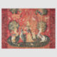 Tapisserie ancienne tissée à Bruxelles vers 1500.Fleurs tourbillonnantes vertes avec une princesse et licorne, élaboration numérique et design par Bulgan Lumini.