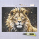 Papier Mousseline Lion Mâle Majestic D'Or Et De Gris,