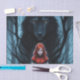 Little Red in the forest and a black wolf in the forest dark fantasy AI generated art